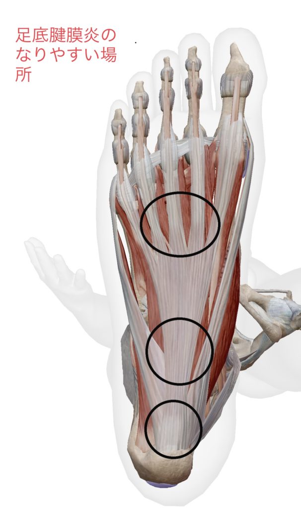 スポーツ選手や立ち仕事、よく歩く走る方に多く発症し足の裏に長時間の負担がかかり続けると、踵の裏を中心に足の全体が痛くなり炎症が起こります。